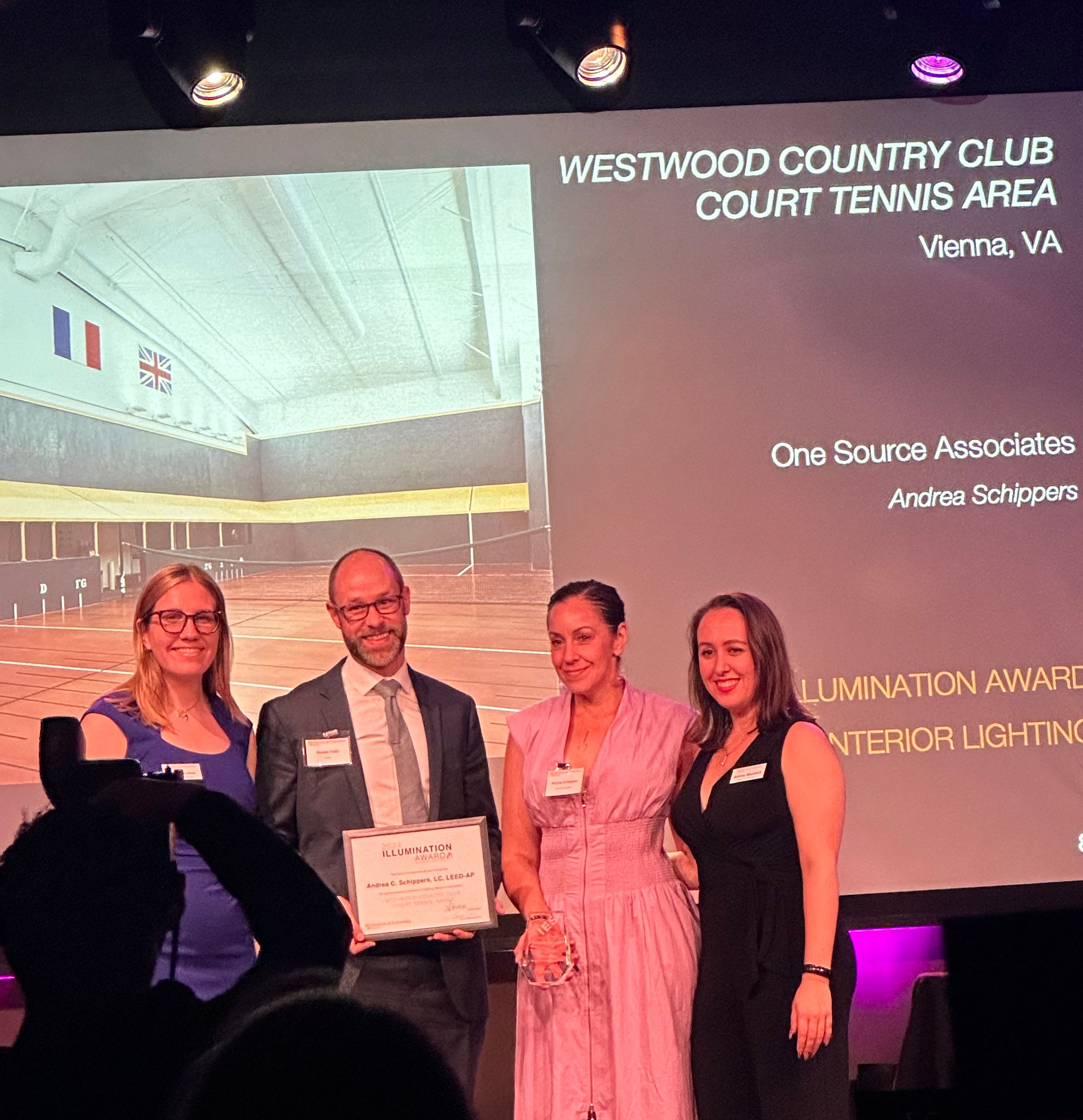 Our very own Andrea Schippers was celebrated as part of the IES DC Candela Awards with an Interior Lighting Illumination award for her work on the Westwood Country Club Court Tennis Area project. Bravo, Andrea! And a round of applause for the other winners on their achievements in lighting design!