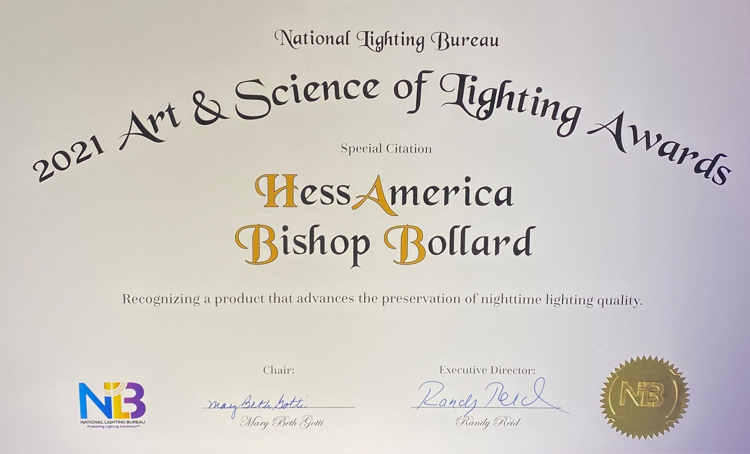 HessAmerica’s Bishop Bollard received the special citation in the combined Art & Science Lighting Award category for advancing the preservation of nighttime lighting quality.
